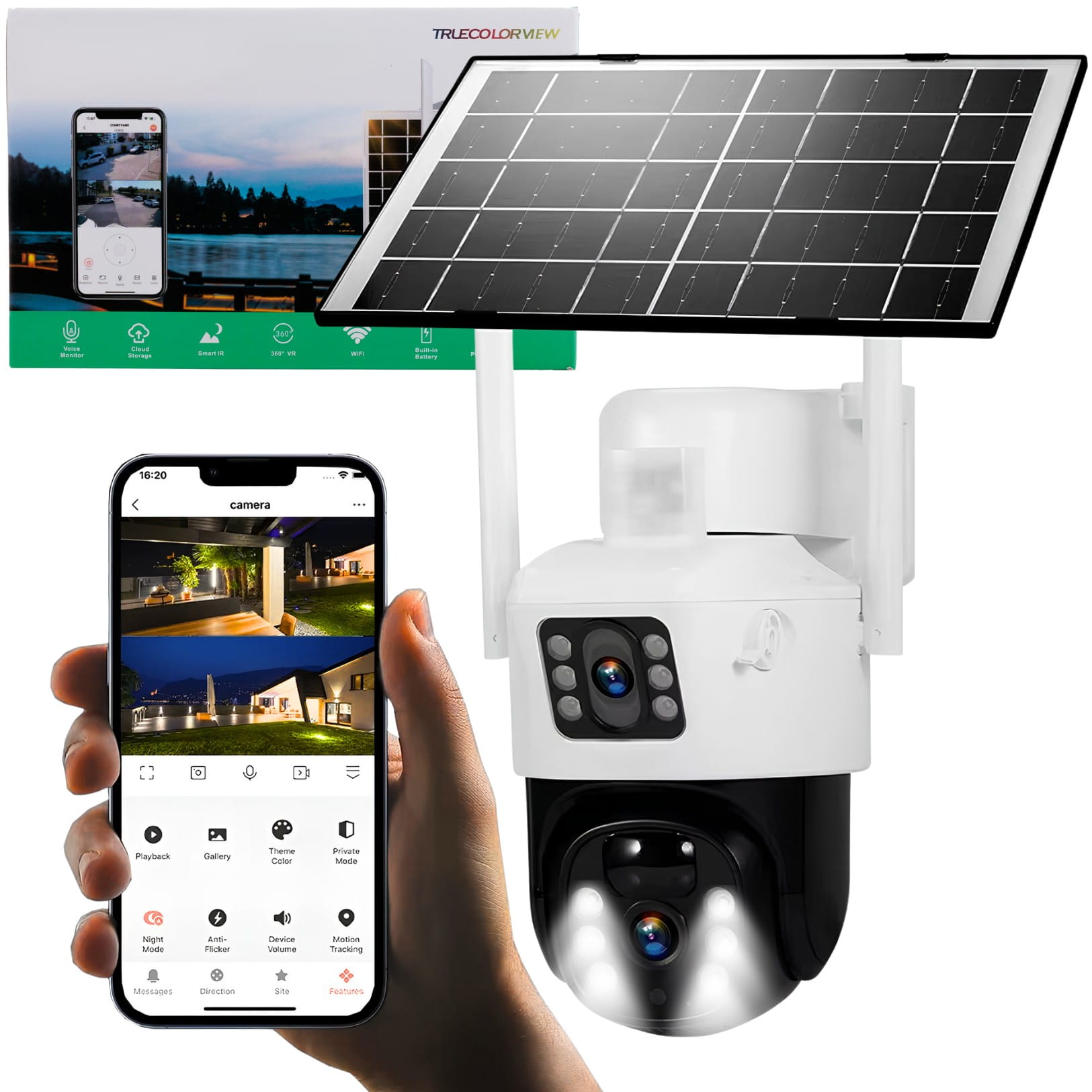 - Zasilanie: Panel solarny 7W + wbudowane akumulatory