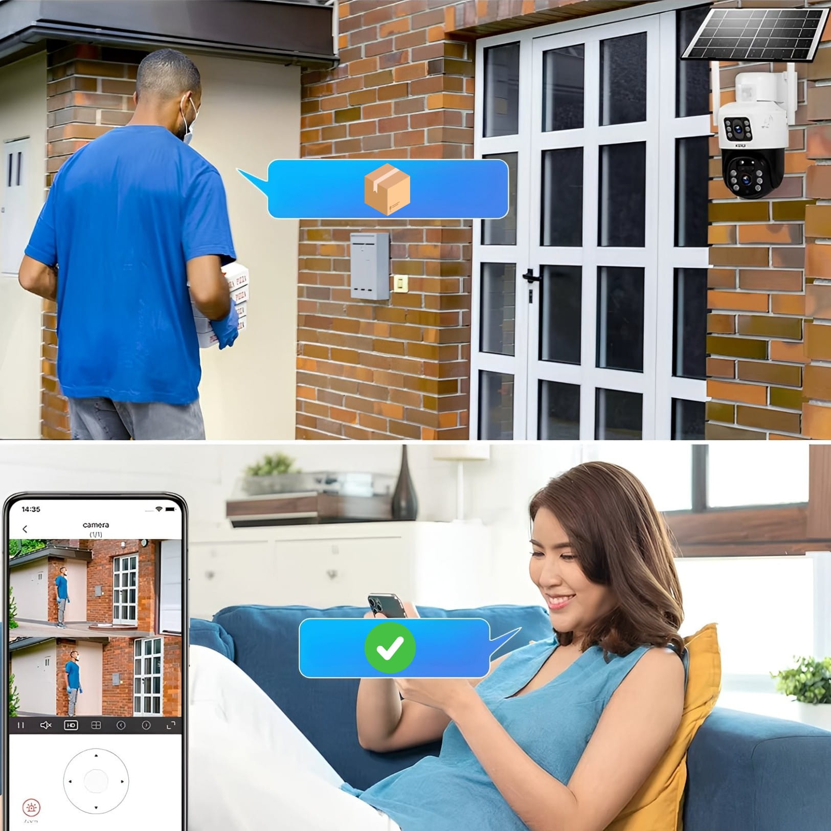 - Dwustronne Audio: Wbudowany mikrofon i głośnik pozwalają na rozmowę z kurierem lub skuteczne odstraszenie złodzieja głosem.