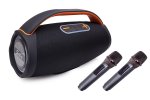 W zestawie znajdują się dwa mikrofony, dzięki czemu możesz śpiewać w duecie lub prowadzić zabawę karaoke ze znajomymi. Urządzenie posiada również funkcję powerbanku, która pozwala na ładowanie telefonu lub innych urządzeń mobilnych bezpośrednio z głośnika.