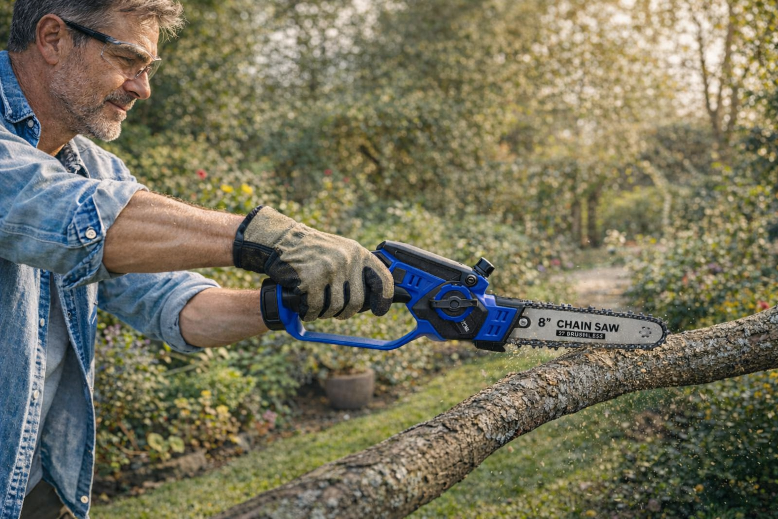 Akumulatorowa mini piła łańcuchowa 21V – idealna do ogrodu, działki i domu