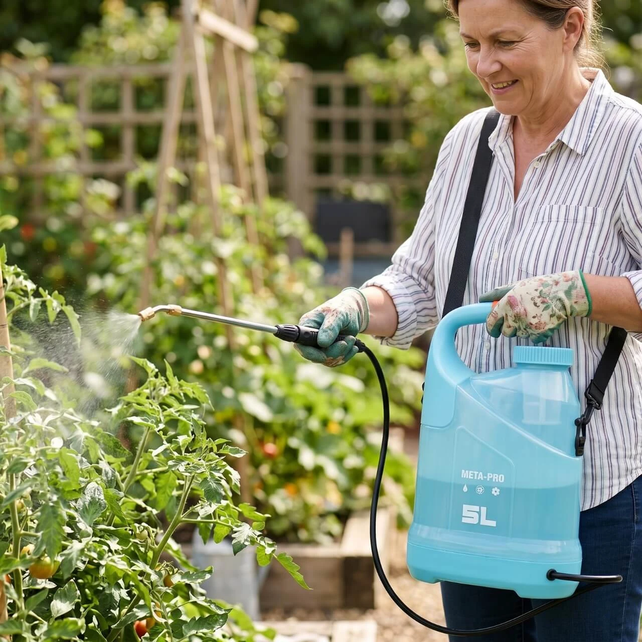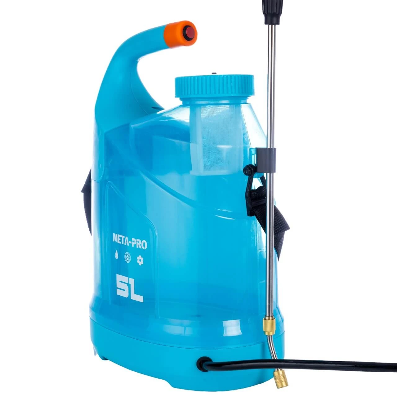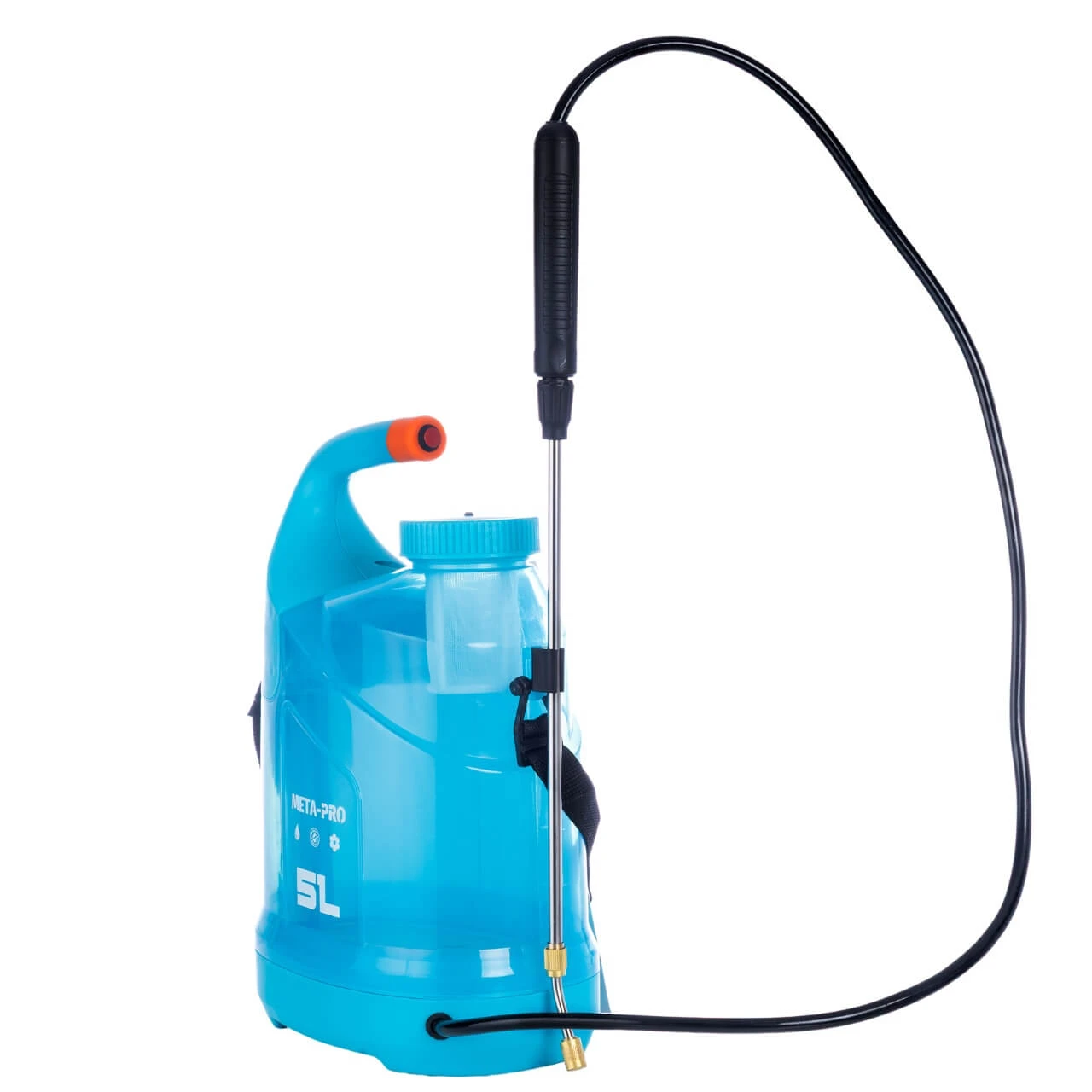 Zbiornik z wytrzymałego tworzywa PP o pojemności 5 litrów to idealny kompromis między wydajnością a wagą. Nie obciąży zbytnio pleców, a w połączeniu z regulowanym paskiem na ramię, długim wężem PVC (125 cm) i lancą (53 cm) zapewnia pełną swobodę ruchów.