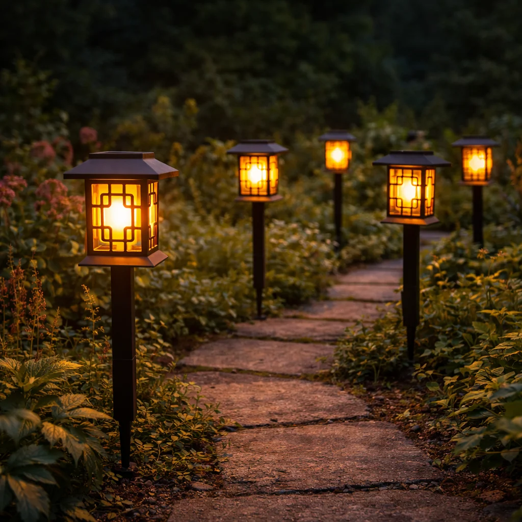 Solarna lampa ogrodowa Chiński Domek z efektem płomienia
