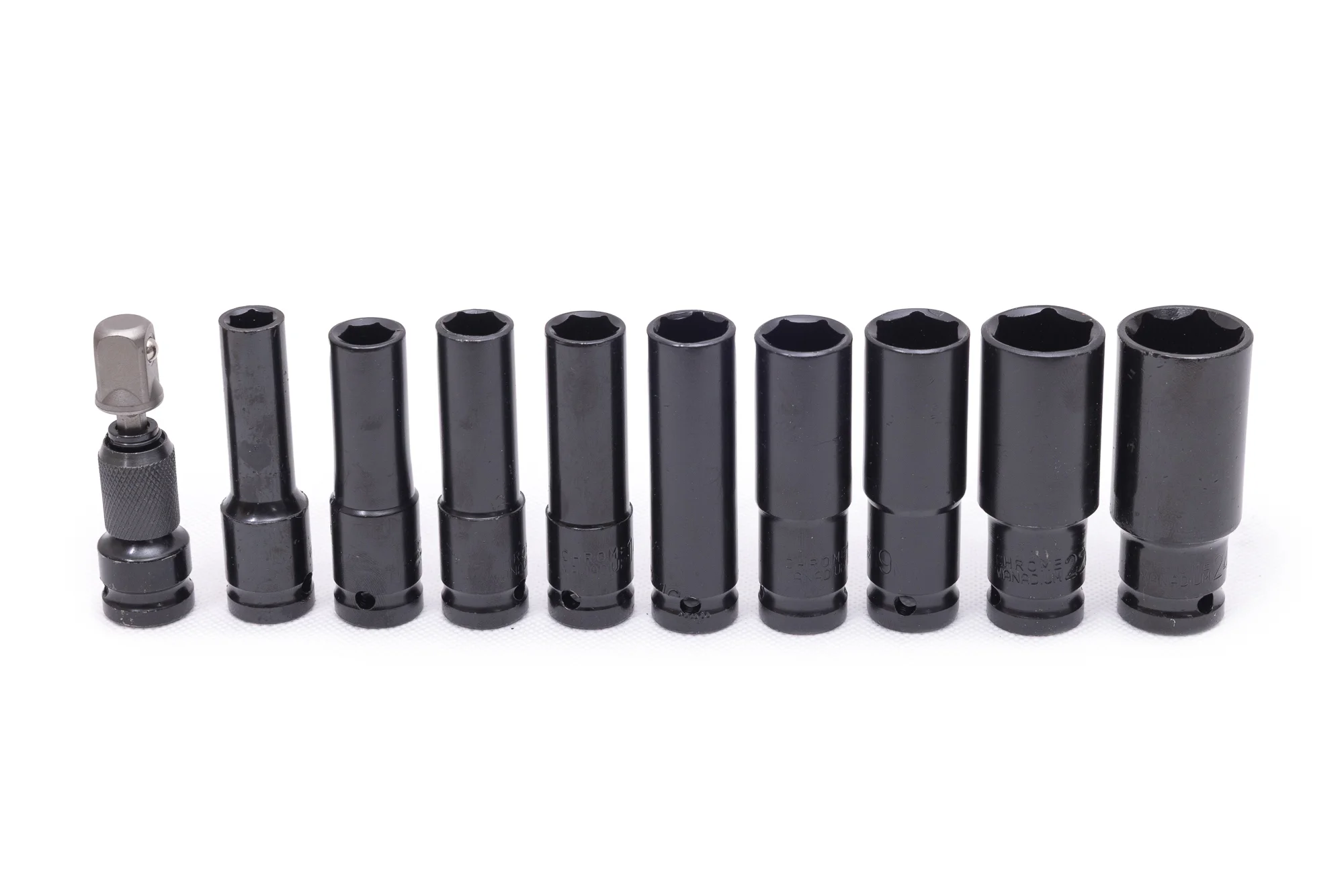 nasadki: 10 mm, 12 mm, 13 mm, 14 mm, 16 mm, 17 mm, 19 mm, 22 mm, 24 mm