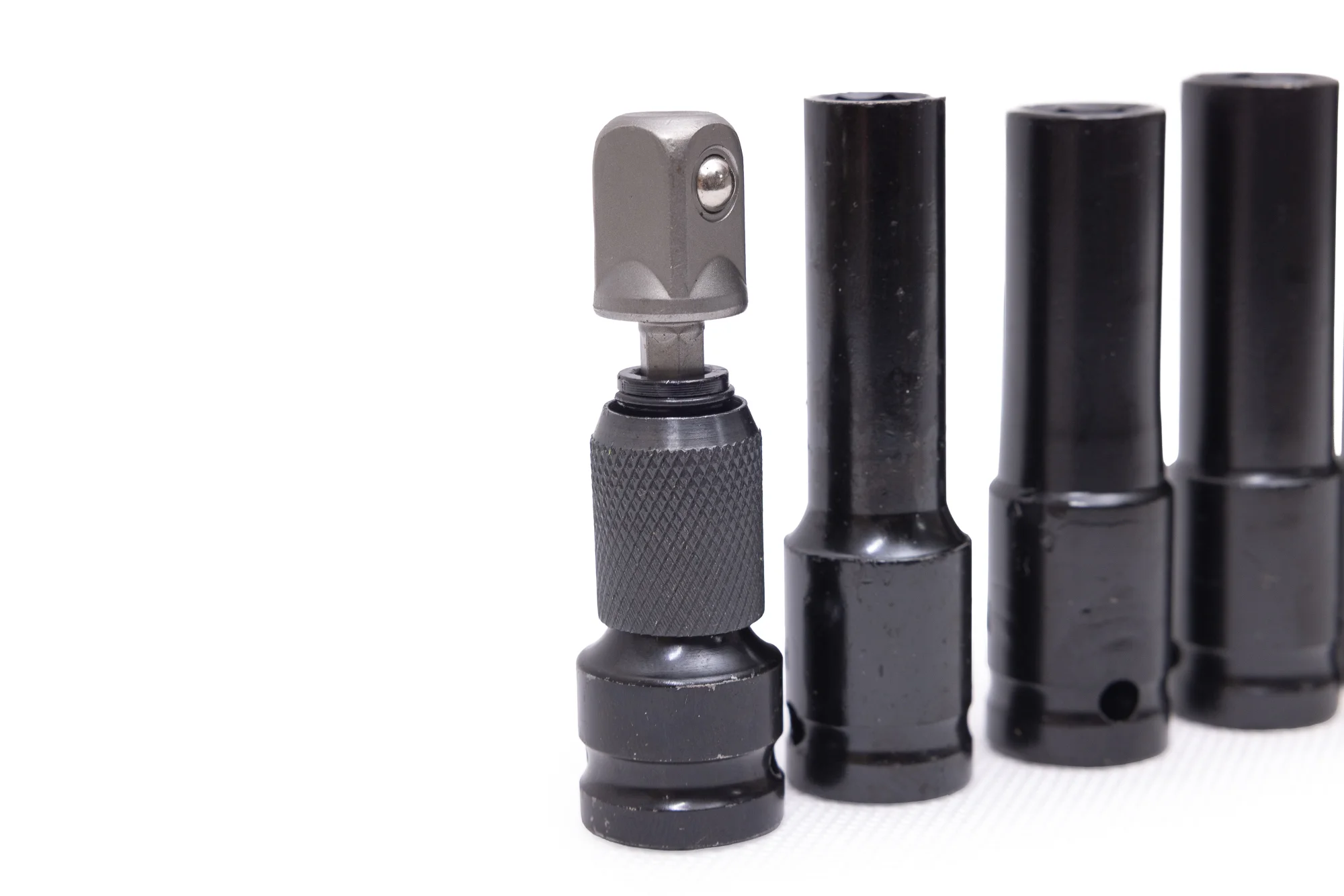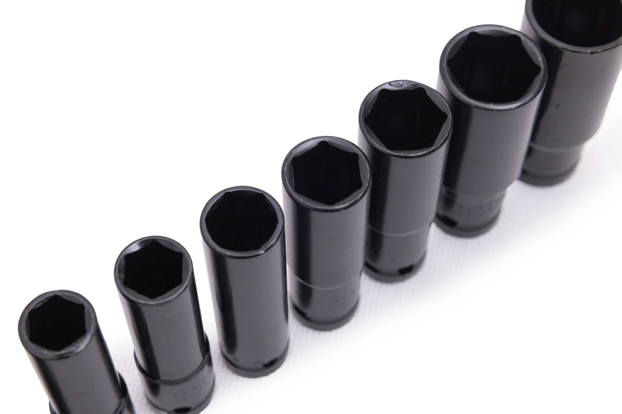 Każdy element ma wysokość 75 mm, dzięki czemu zestaw sprawdza się również przy pracy w głębiej osadzonych śrubach. Nasadki pokryto czarną farbą błyszczącą, która nie tylko nadaje im estetyczny, profesjonalny wygląd, ale także dodatkowo chroni powierzchnię przed korozją.